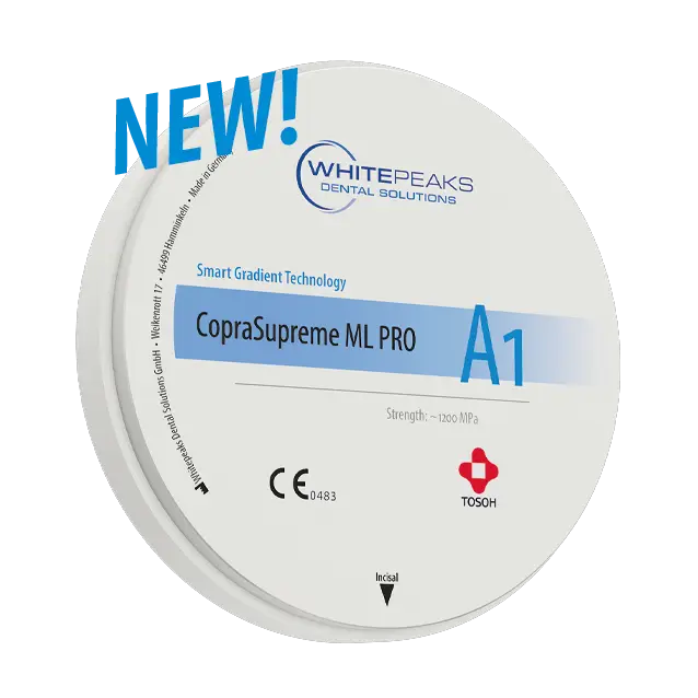 Classic zirconia with highest bending strength for bridges with up to 14 units in white and dentin coloured in three